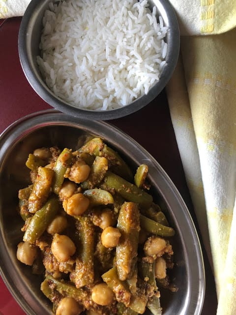 Kadle Manoli - a GF, Vegan curry from the Coastal region of Mangalore (Karnataka, India) made with chickpeas and tender ivy gourd