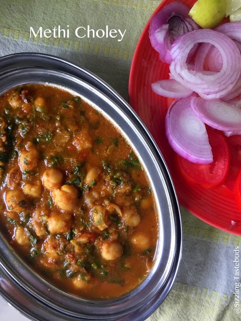 Methi Chole - a GF, vegan curry for Rotis / Rice made with Chickpeas + fresh fenugreek leaves