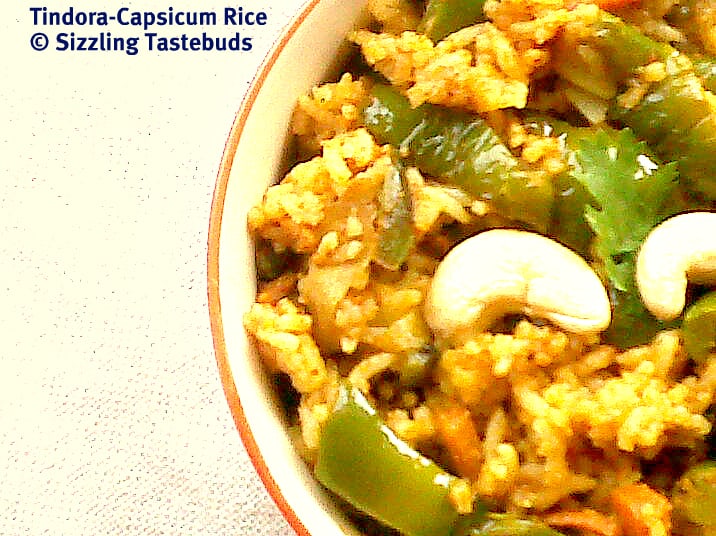 Unusual combination of Tindora & capsicum with rice.. worth a try.. It looks colorful and inviting...