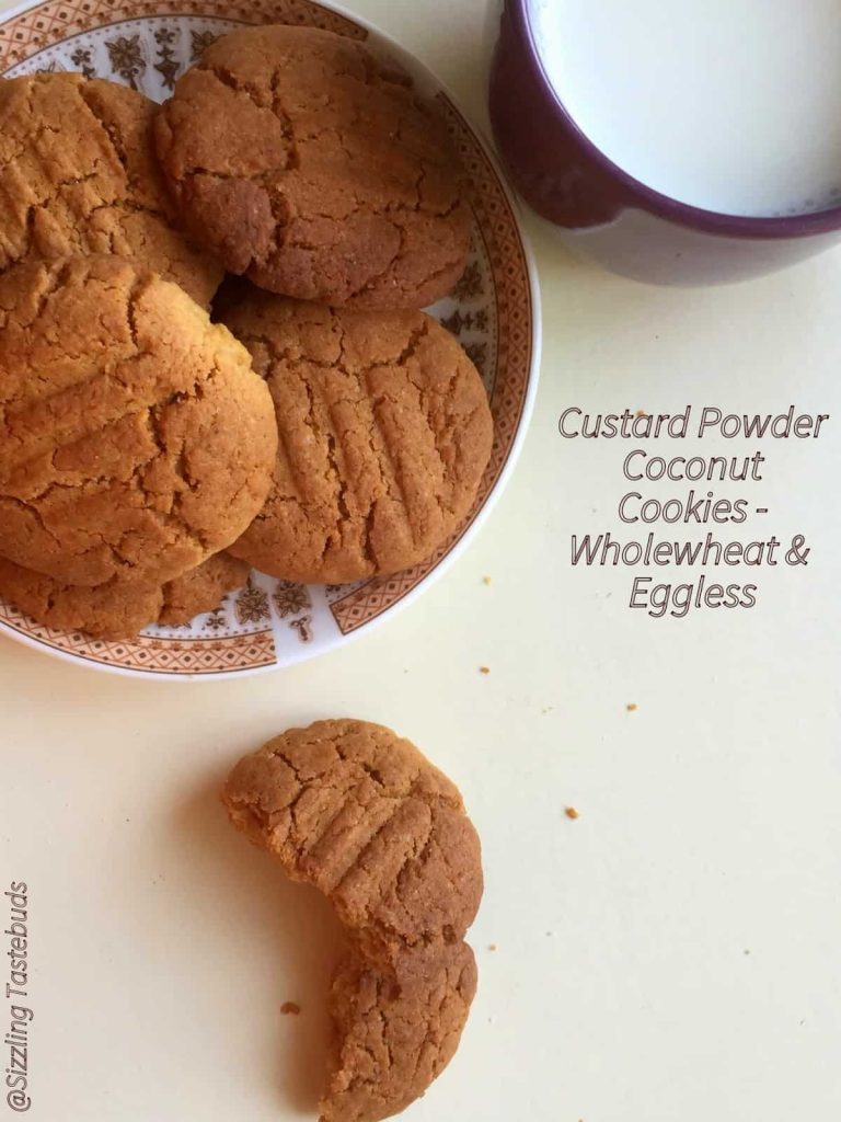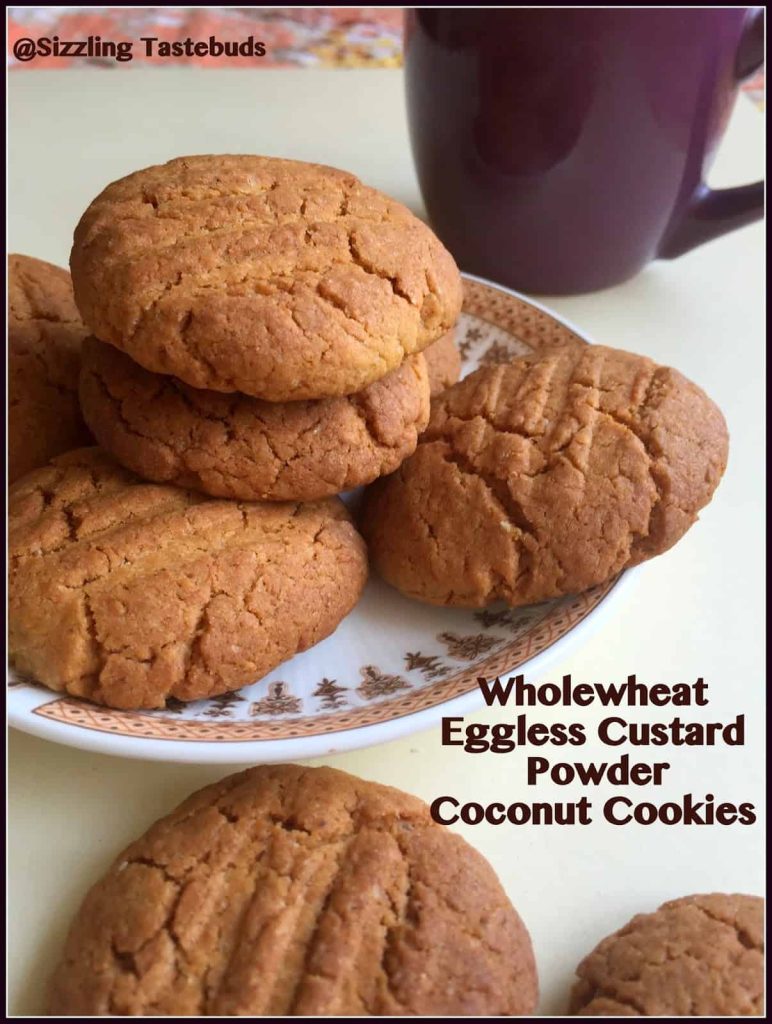 Eggless Wholewheat Custard Powder Coconut Cookies