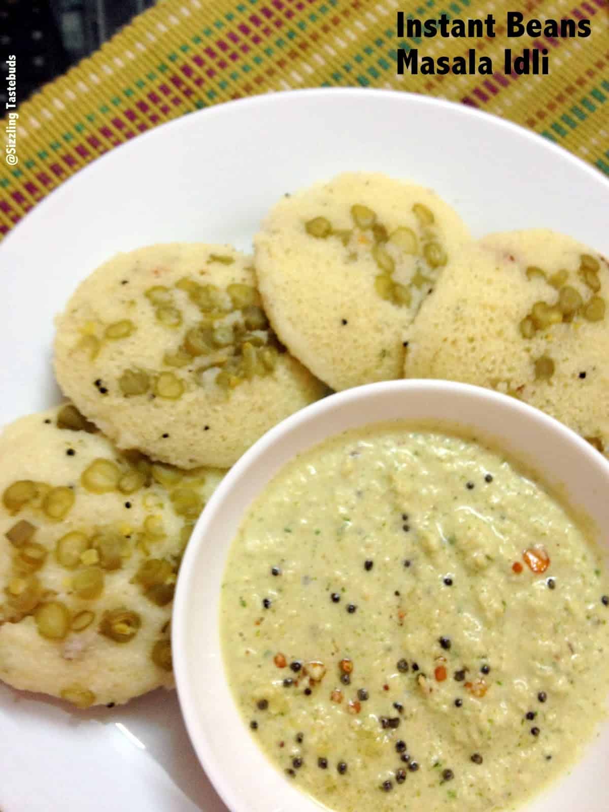 Instant Masala Beans Idli - a steamed savoury breakfast