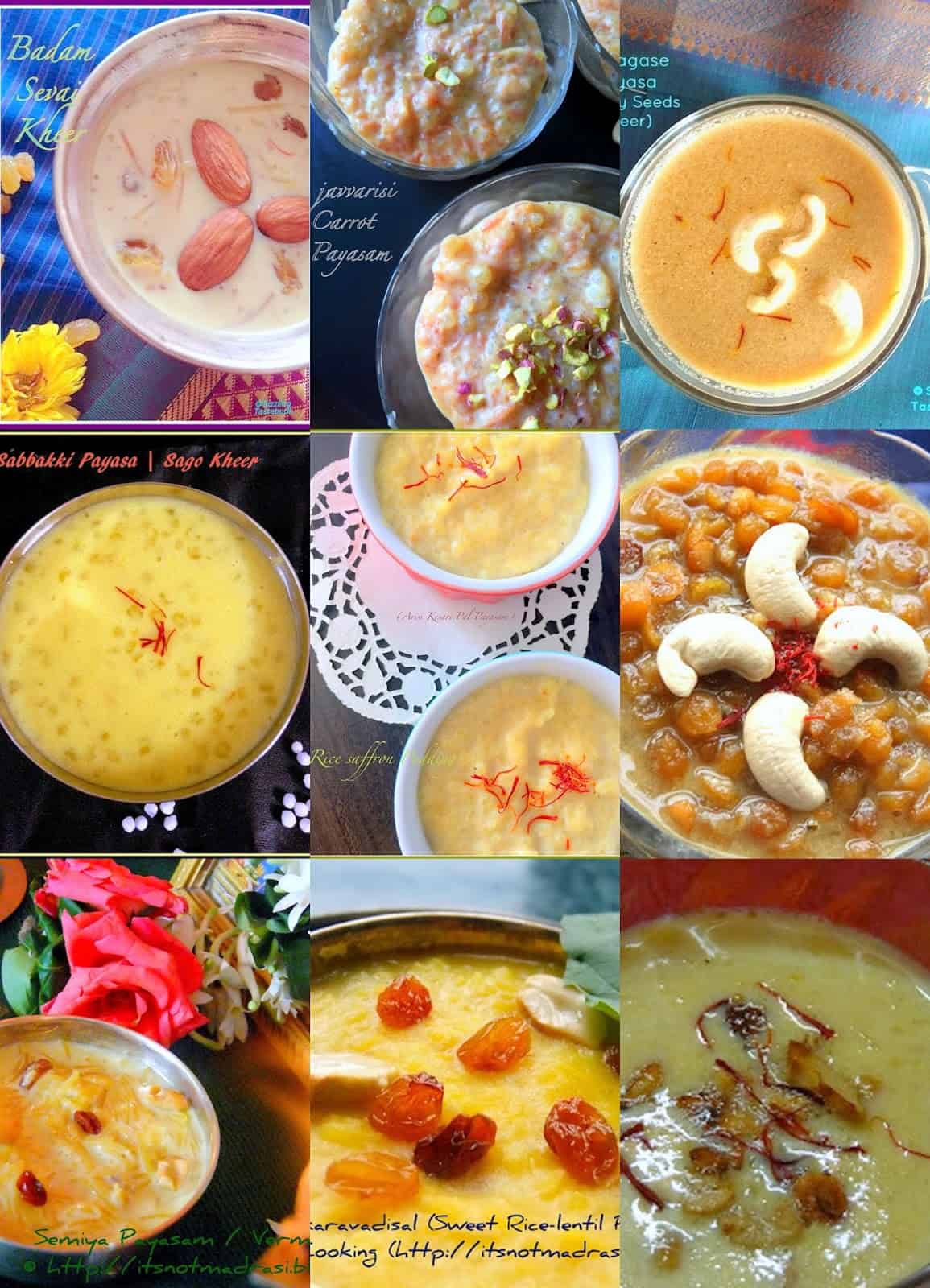 9 varieties of Kheer / Payasam & milk based sweets for Offering