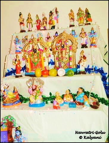 Golu or dolls in 3-5-7-9 steps are neatly arranged in South Indian homes, often with a theme to go with, and there is a social - cultural event happening inviting ladies for Haldi Kumkum to each others' places in the evening times.
