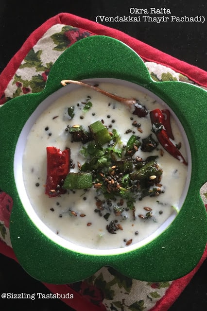 At our house, we make the South Indian Thayir Pachadis with veggies like Ashgourd (Pusanika), Okra (Vendakkai) Snakegourd (Podalangai), Ginger, Brinjal, Roasted Bell Pepper, etc. My favourite however remains Pineapple-Cucumber Raita