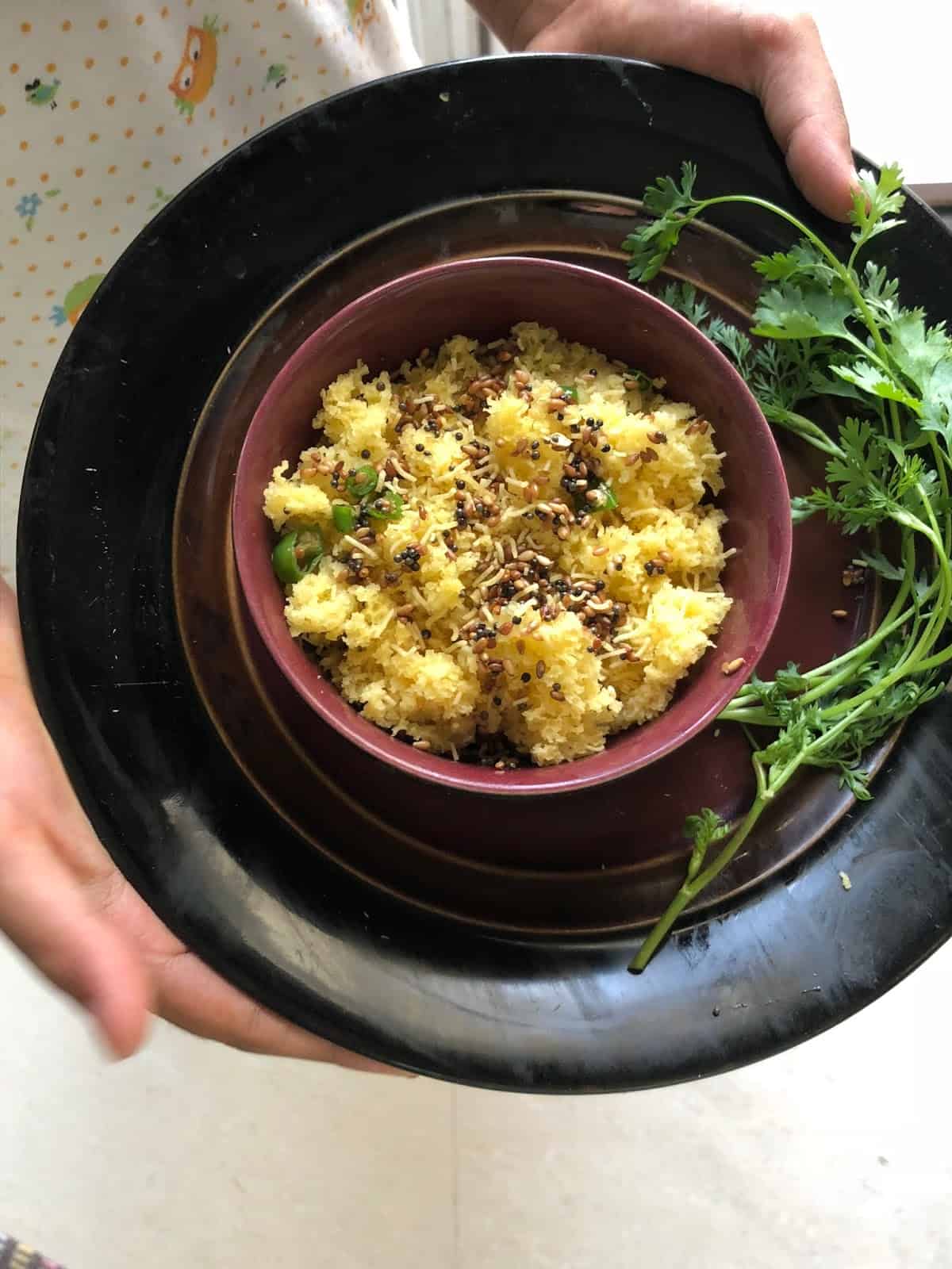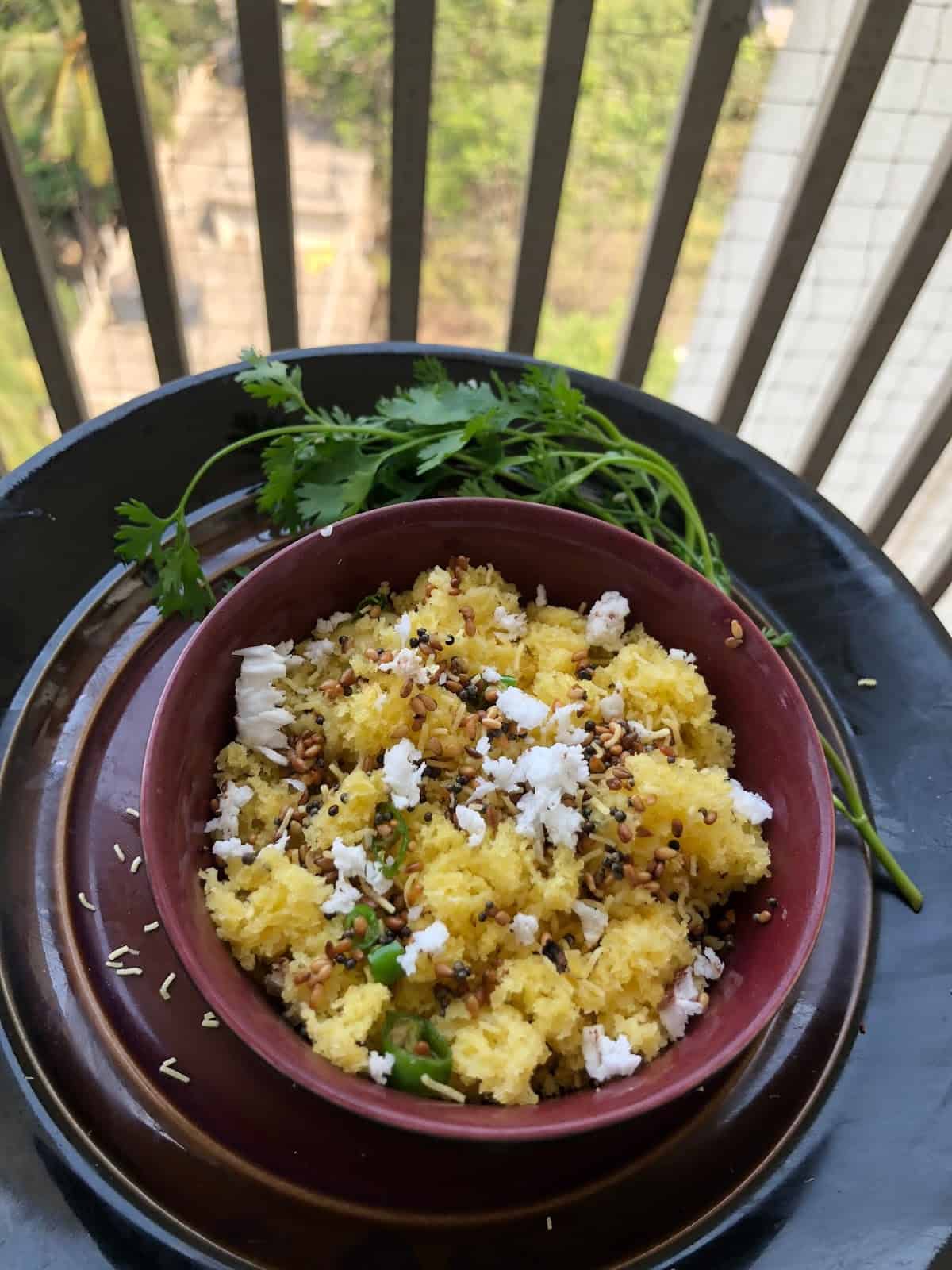 And then you have those dishes which are created from leftovers like today’s Amiri Khaman. The soft spongy dhokla is dressed up further to make this amazing snack Amiri Khaman.