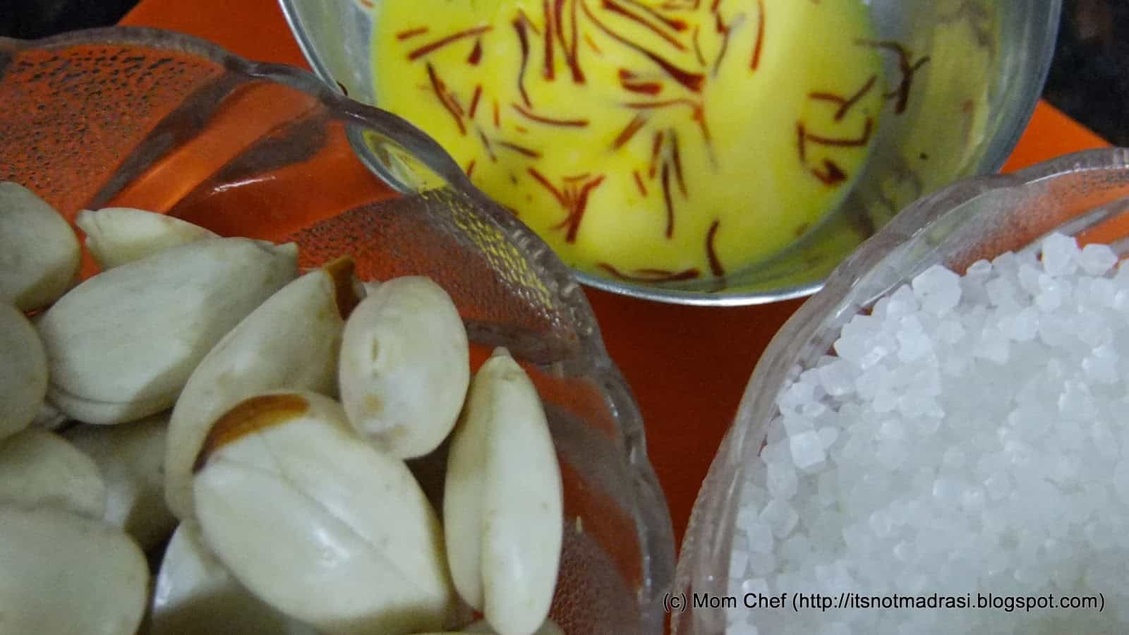 2) Peel them and grind them along with saffron soaked in milk & elaichi powder. If required, add extra 1 – 2 teaspoon of milk for grinding.