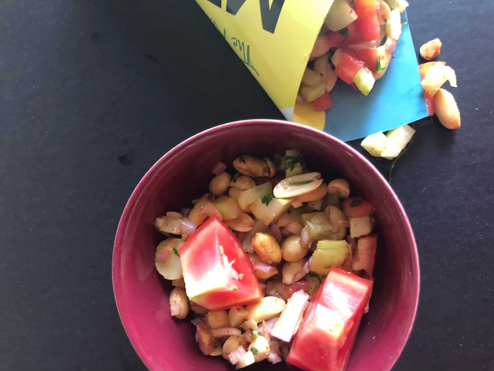 This is one amazing chatpata chat from Kolkatta. At first I thought that this is almond based, but peanuts is a sweet surprise. The chat looks so yum and sounds so flavourful..