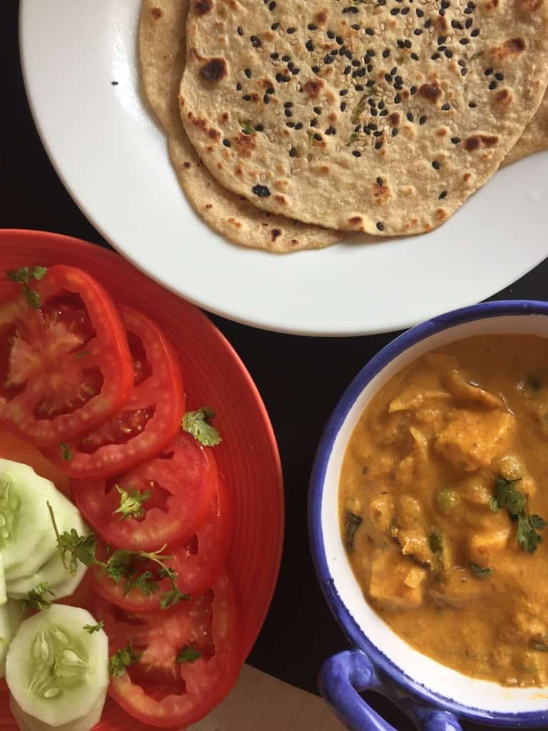In the above dish, you could sub the paneer with Tofu / Tempeh for a 100% Vegan dish, but the kids loved this paneer dish a lot with Wholewheat Kalonji Naan and a salad.