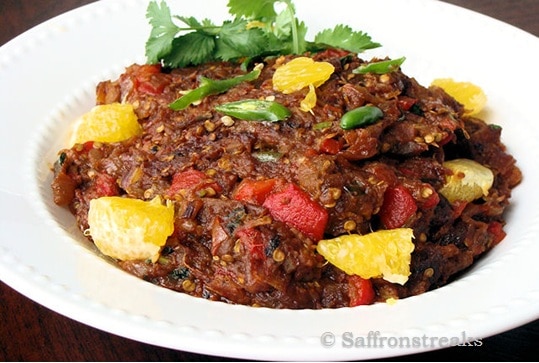 Summary: Indian baingan ka bharta or smoked eggplants with a Mediterranean touch