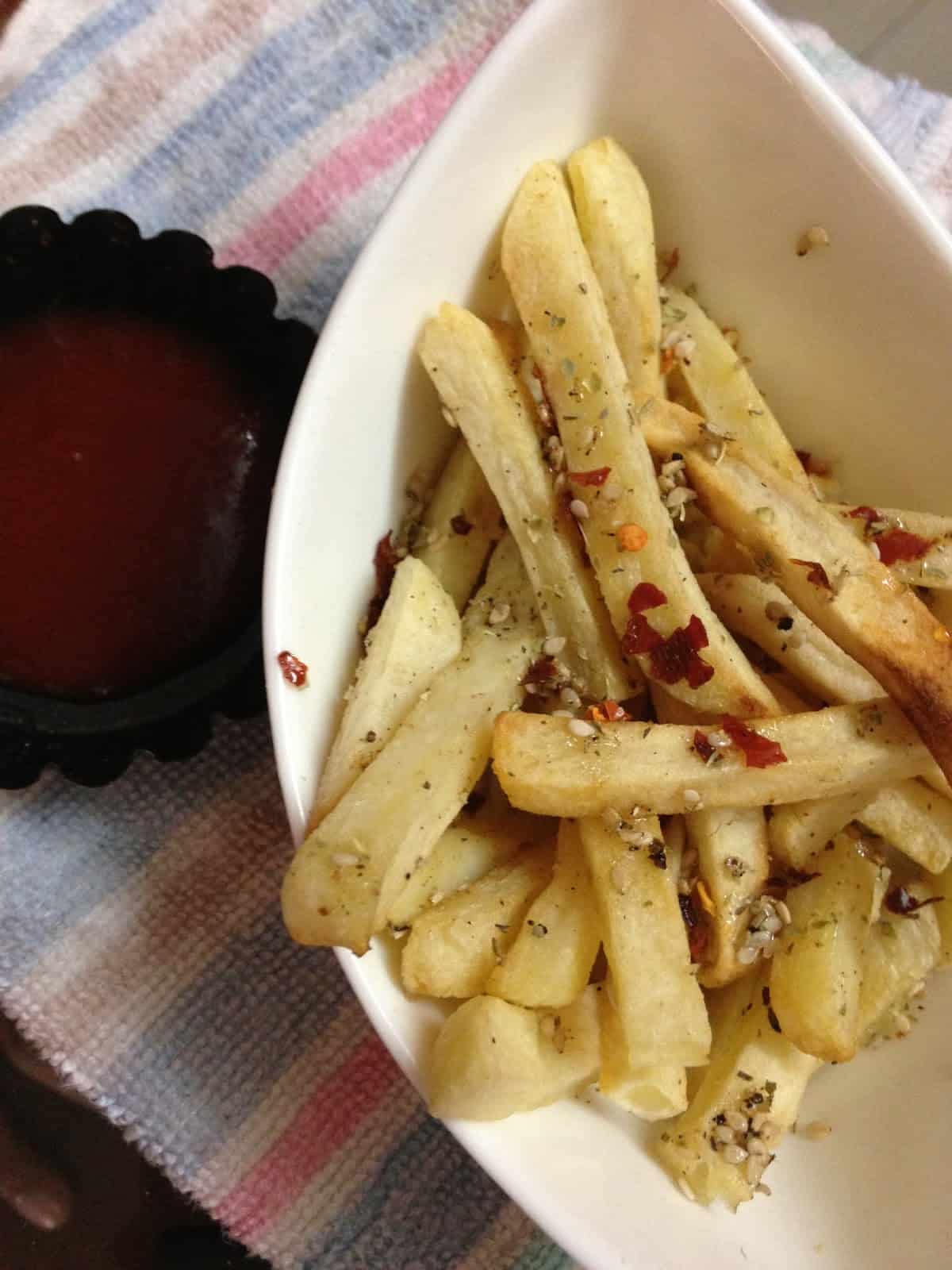 Honey chili fries have turned out so good and the fact that these are baked is a guilt free snack to indulge in.