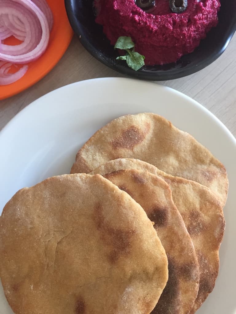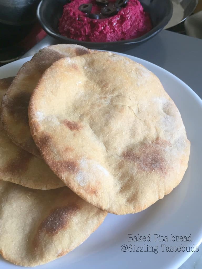 This Pita Bread was made along with Beetroot Hummus . I had made a middle eastern platter earlier too. This is a new version of Pita which worked so well, so thought I would document this with some new dishes.