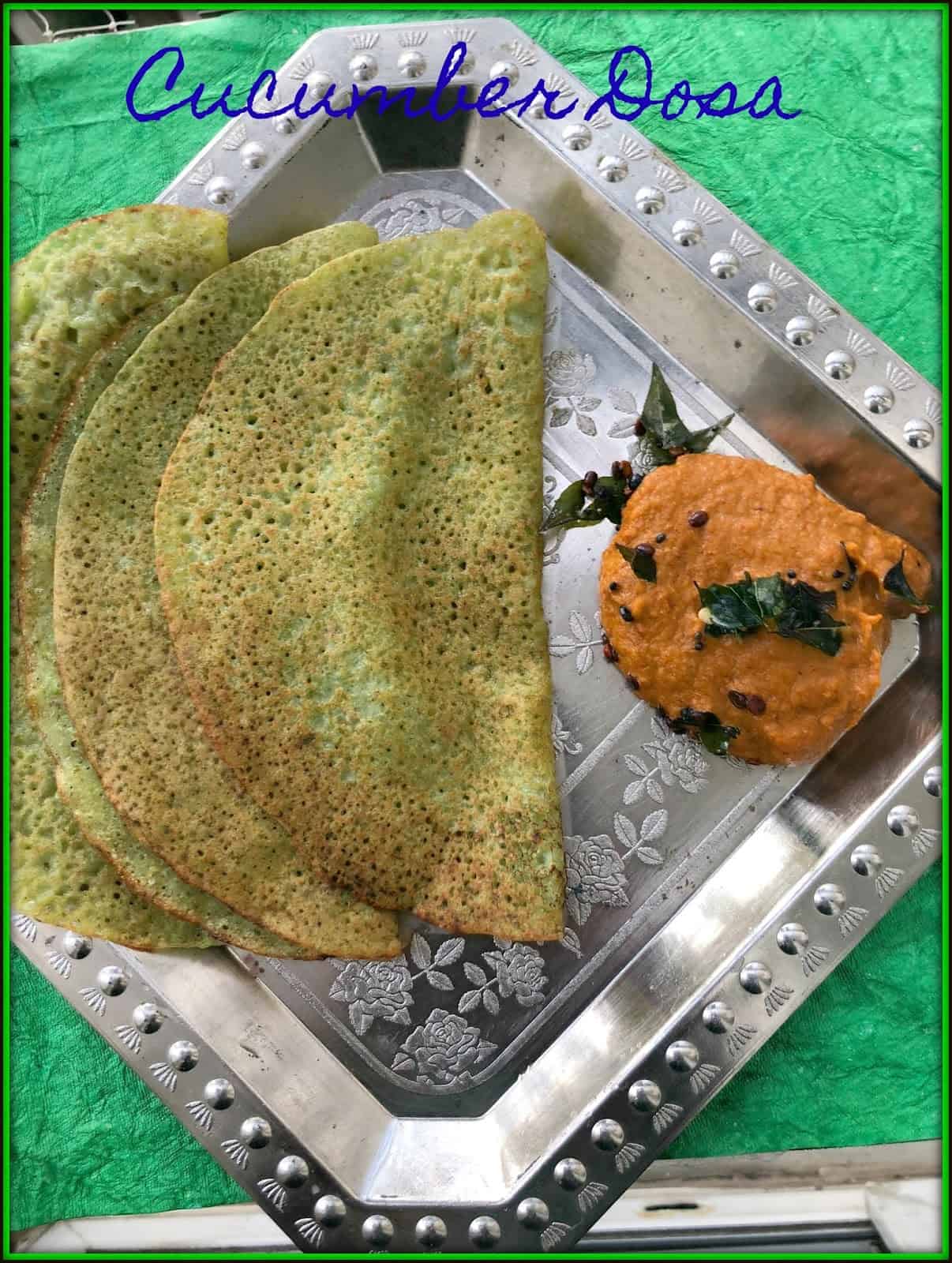 Vegan, GF, Cucumber Dosa served with Chettinad Khara Chutney
