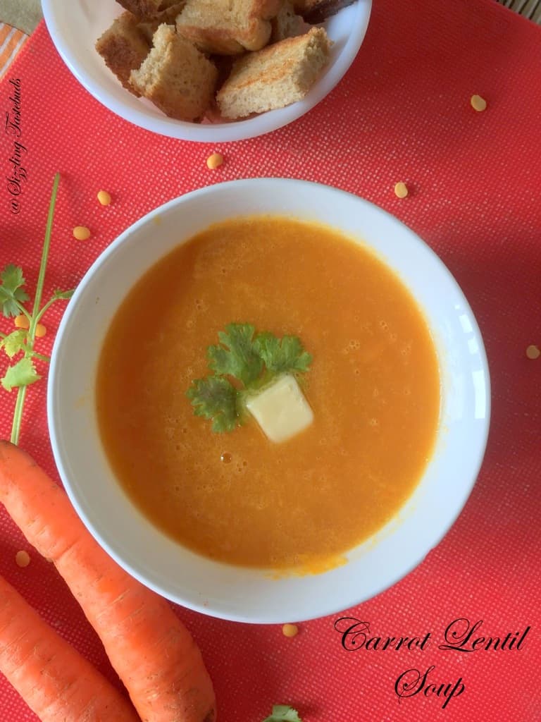 Nice nutritious soup with carrots and lentils. Looks so yum..