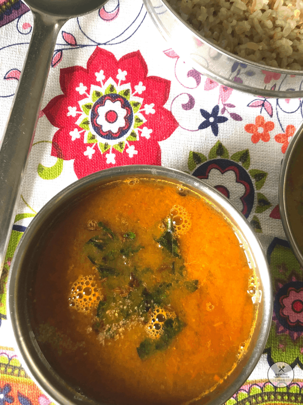 In traditional Tambrahm households, Rasam as a nomenclature is forbidden to be used.Sattamudhu (coming actually fromSaatru Amudhu- meaning nectar of food. Rasam is meant to be a flavourful, spice-heavy light broth which has digestive powers, and in a traditional sit-down meal or every day lunches, Rasam always follows a heavy-lentil kootu / sambhar.