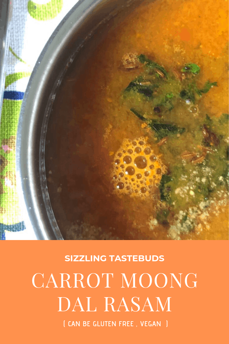 Loving this delicious and healthy rasam with carrot and moong dal. Can enjoy this as is , so comforting