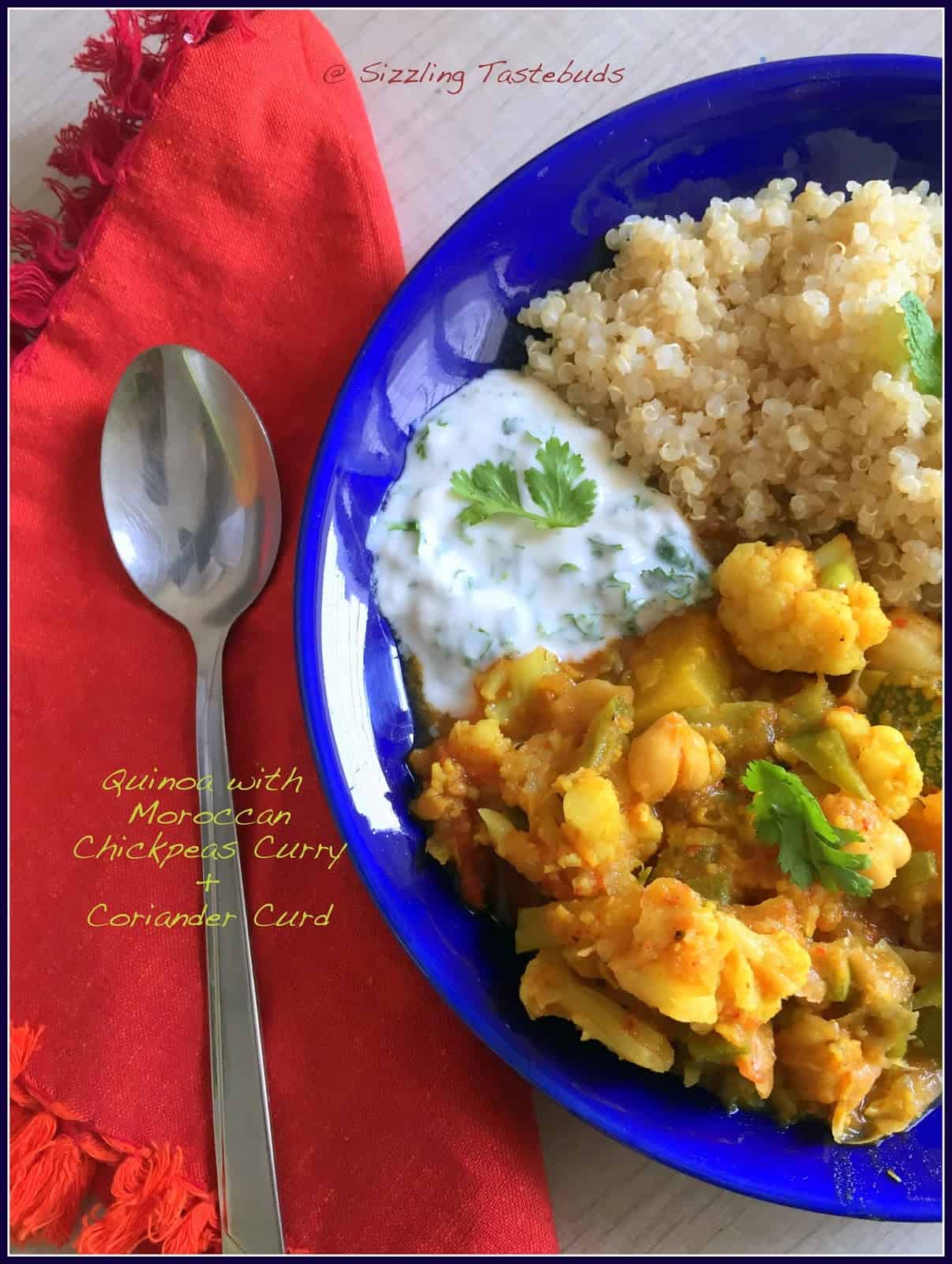 Moroccan Chickpeas Curry with Quinoa and Coriander Curd | Easy Weekday Lunch ideas