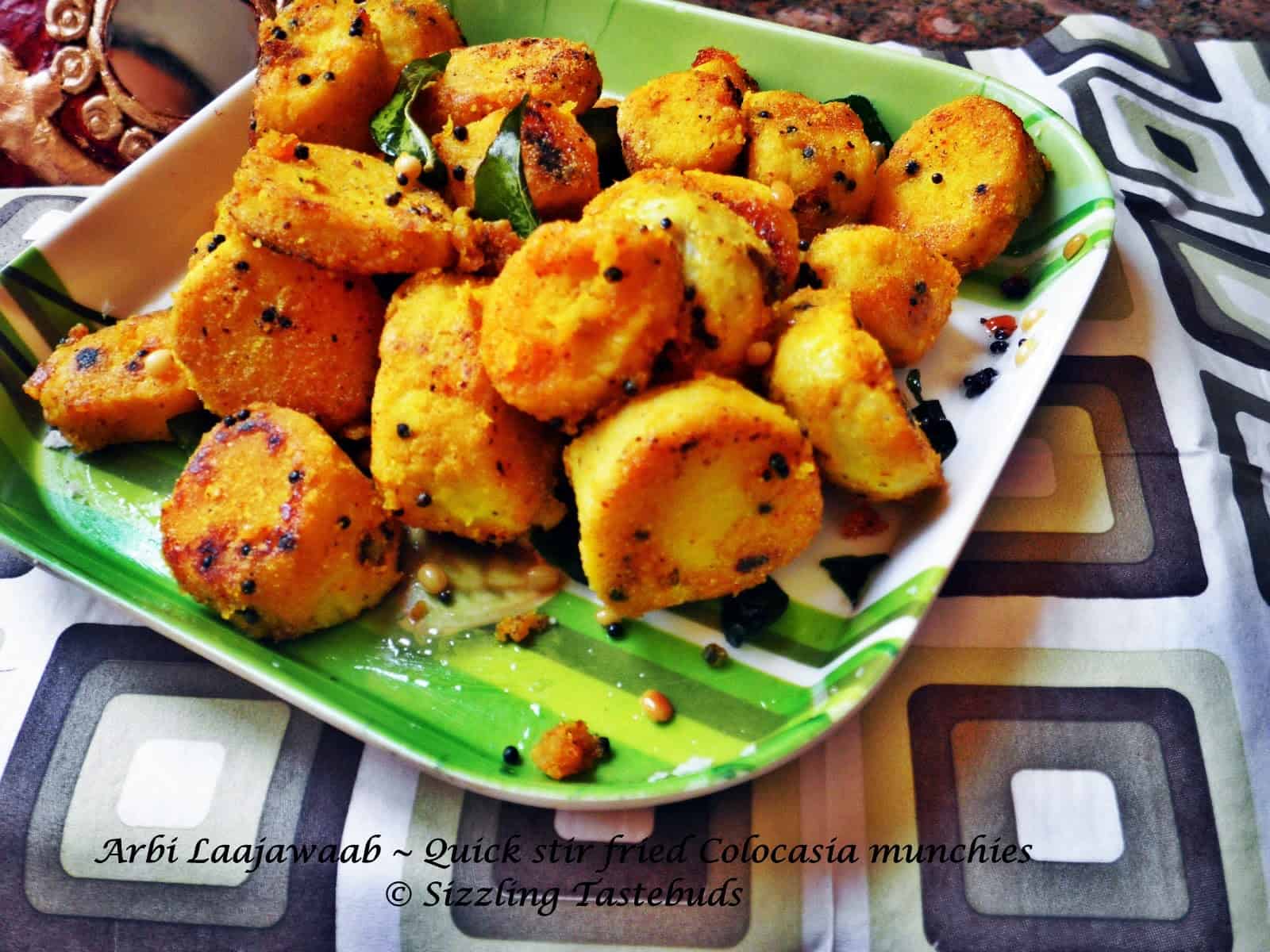 Arbi Laajawaab ~ Stir fried colocasia munchies