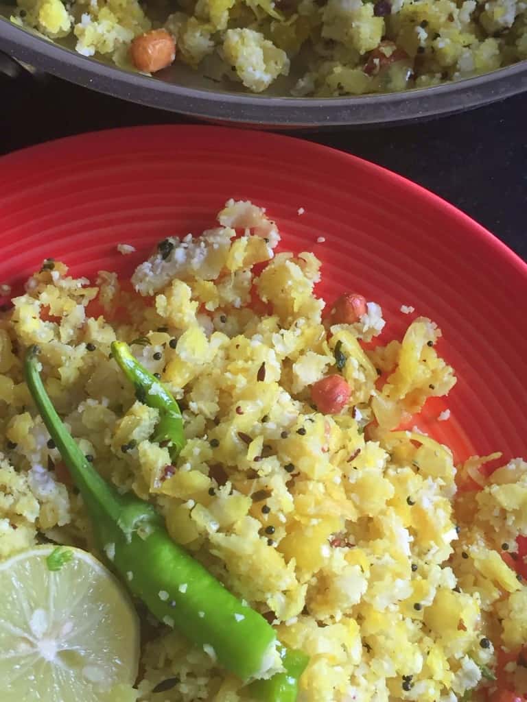 Quick Dadpe Poha - a vegetarian,vegan and GF dish - perfect for breakfast or an evening snack