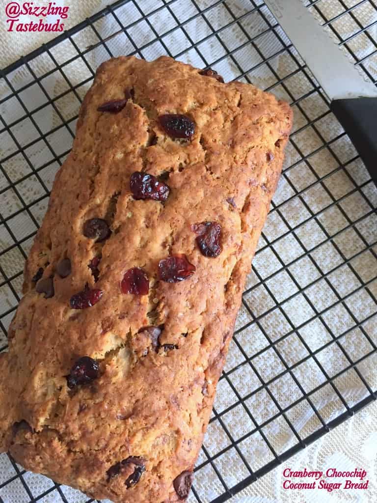Eggless Banana Chocochip Bread with Cranberries and Coconut Sugar