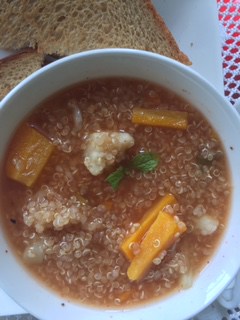 Although I prefer using local produce, quinoa is one grain(?) that I love to use often as its so versatile and lends itself in place of rice beautifully. I had to use a bag of quinoa that was lying in the kitchen and this soup for this theme fit like a glove.