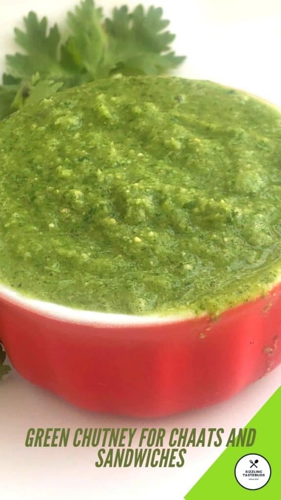 Green Chutney is a no onion no garlic chutney / dip used in chaats, sandwiches and served with snacks.