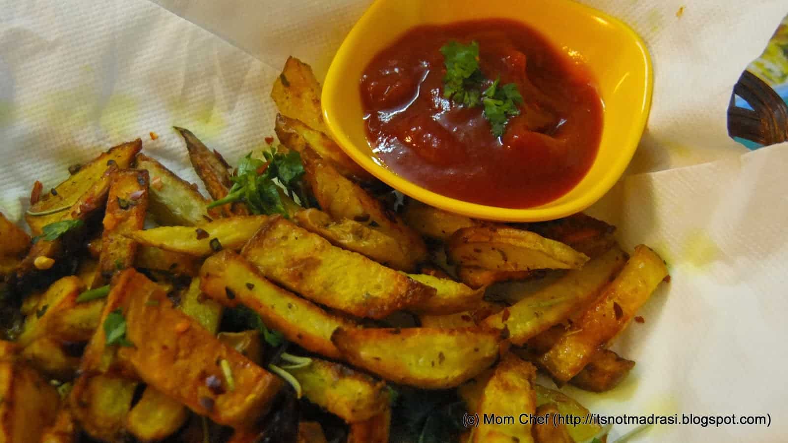 Of all the visits that are planned for a kid, nothing compares to the joy of eating hot French fries @ a McDonalds outlet. With due respect to all Mc D fans out there, it’s the same greasy food, but atleast its consistent across the worldJSo, when Veena’s recipe (which I have slightly modified here) for home made potato wedges came up, I knew I had to bookmark this, not only due to economics but also have the comfort of making this at home. Yes, Herbed Potato Fingers is comparable to the original fries, and I think my little one would slowly come around to having this home -made version regularly.