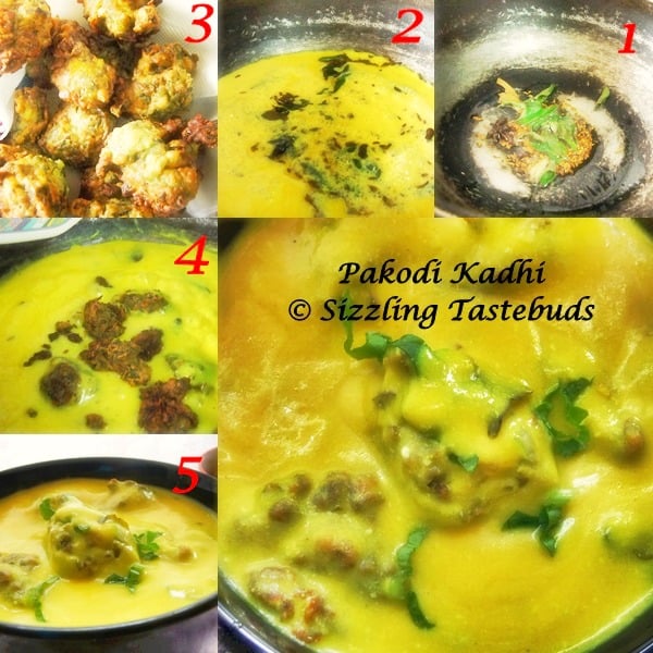 If you are planning to make the pakodis ahead of time, re-fry them once more in hot oil, drain and then dunk them in the kadhi before serving. Soggy and sad looking pakodis draw down the taste of the dish quite a bit