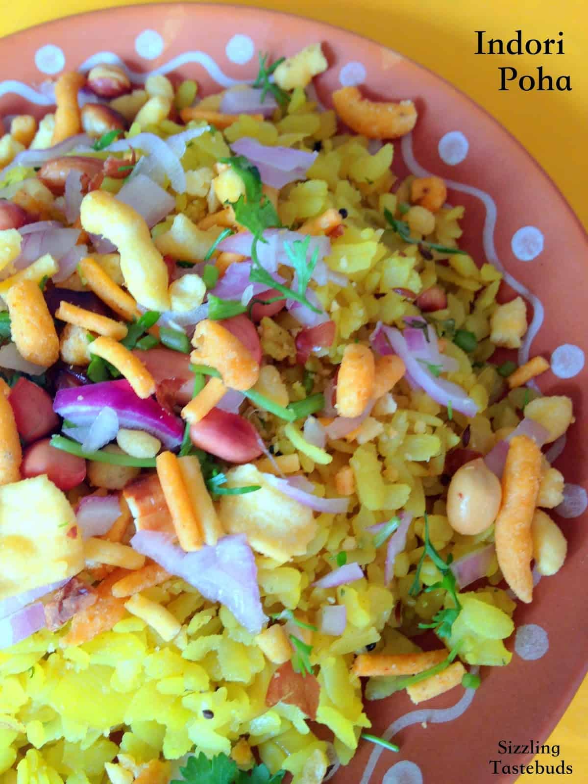 Poha looks delicious with all those sev and onion sprinkled on the top.