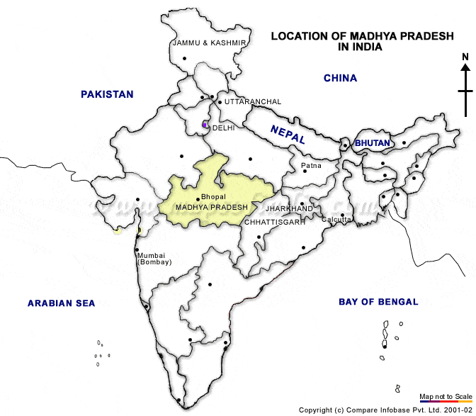 population. It borders the states of Uttar Pradesh to the northeast, Chhattisgarh to the southeast, Maharashtra to the south, Gujarat to the west, and Rajasthan to the northwest.