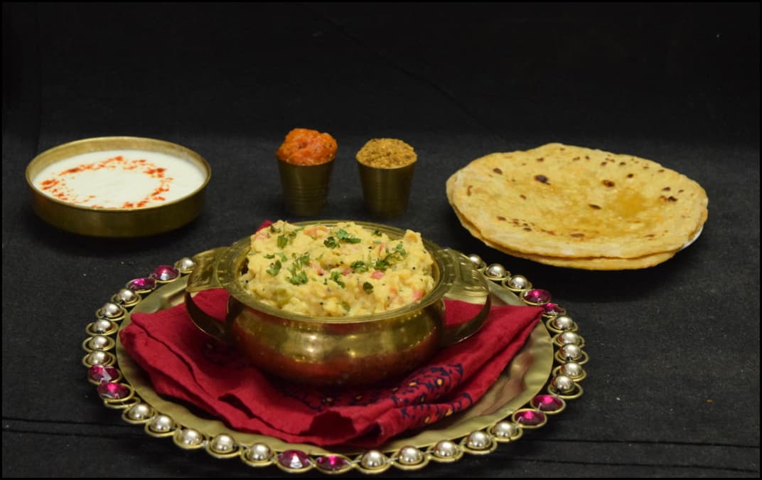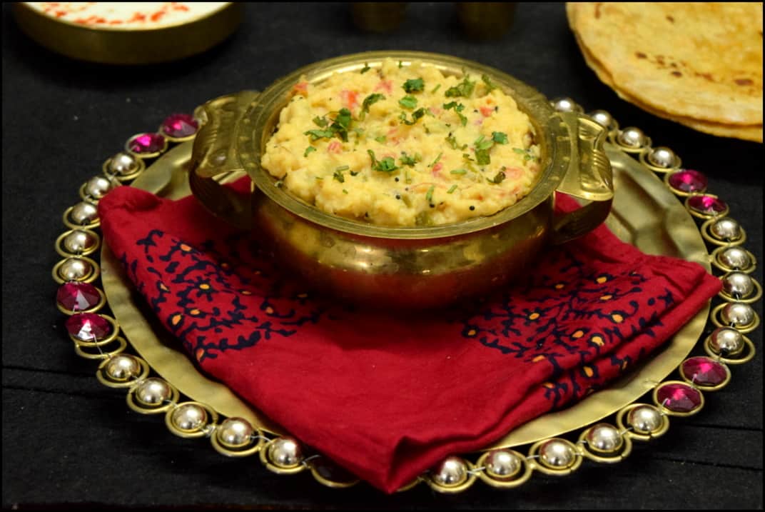 • A no-onion, no garlic dal made with bottle gourd and cooked lentils. Tempered with basic kitchen spices. Served with steamed rice / Roti (Flatbreads)