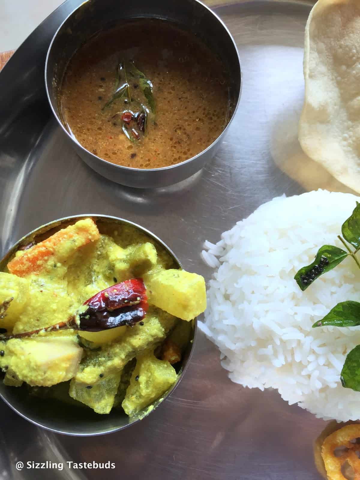 and Kuzhambu (or kozhambu) : a tangy gravy made mostly without lentils veggies