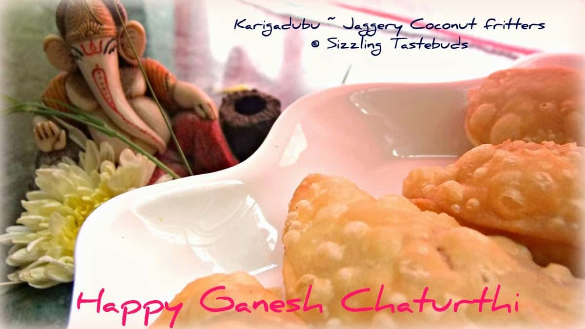 While modaks / kozhakattai (steamed dumplings) are quite popular for Naivedyam, equally popular is today's post - Karijikaayi / Karigadubu (deep fried fritters stuffed with jaggery and coconut) - and is a staple of Karnataka cuisine. Mom makes this very well, and also agreed to make it this year for me.We also made Ulundu Kozhakattai (recipes coming soon) along with Khara Kozhukottai.