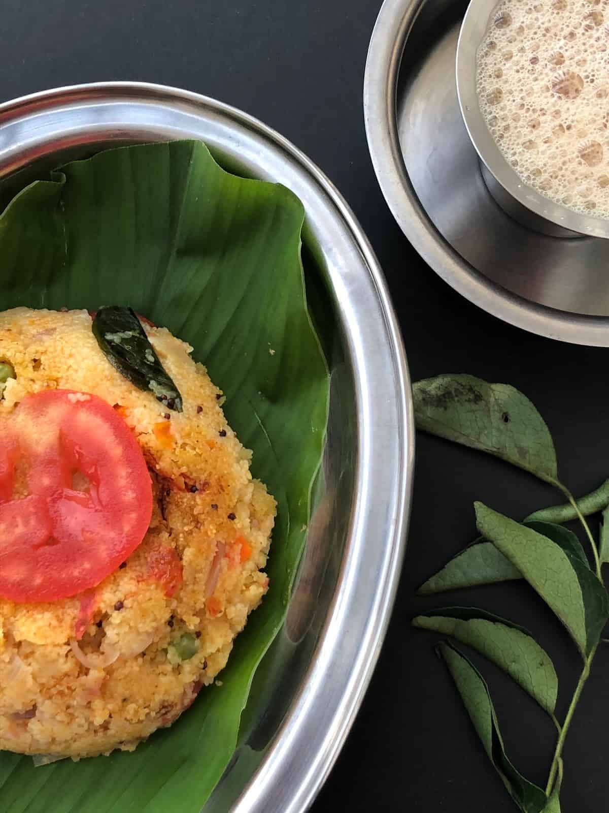 A perfect breakfast and love the set up of kharabhath and coffee. Now I need some kesari bhath to go with it. 🙂