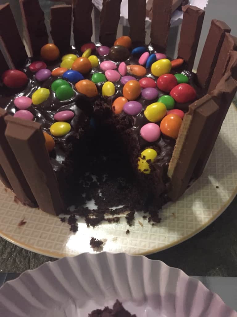 Wow KitKat chocolate cake looks so delicious and healthy and especially I loved the topping with gems. My kids going to love if I make this means.