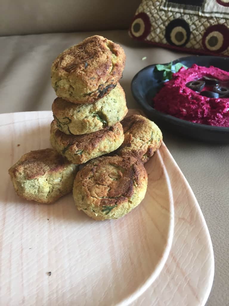 Lebanese Meal with Baked Falafels, Roasted Veggies, Pita