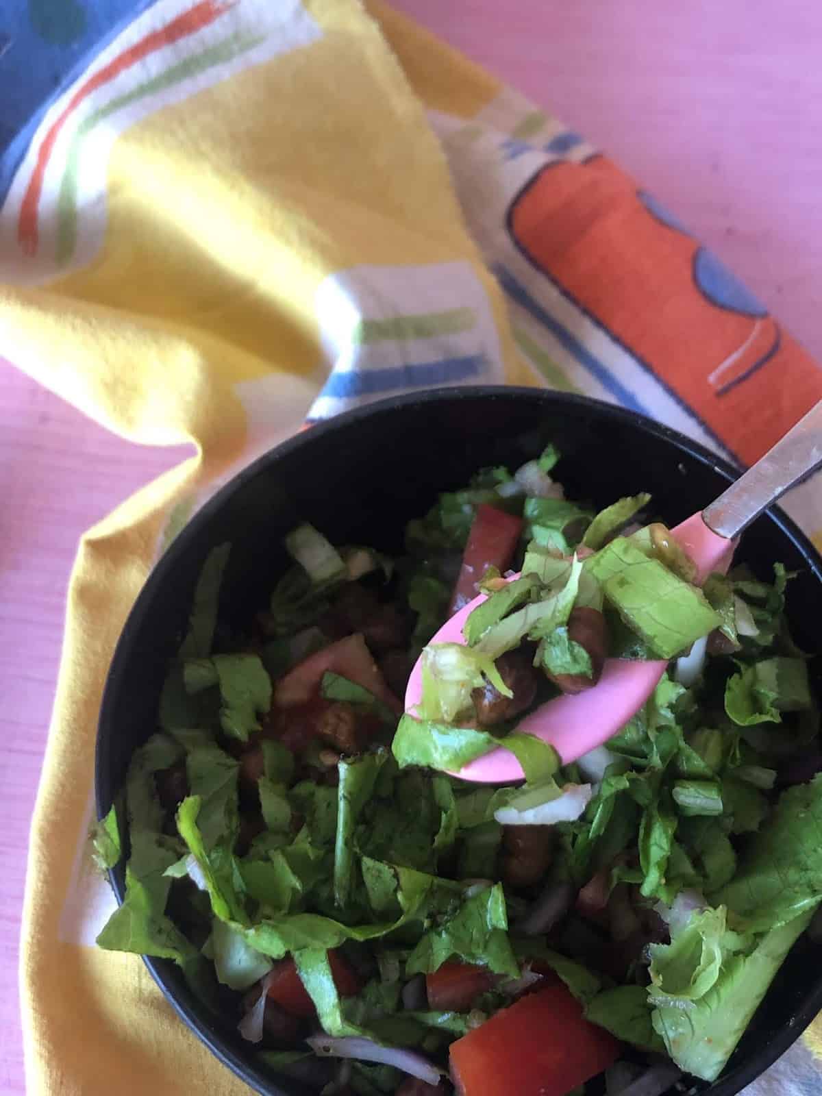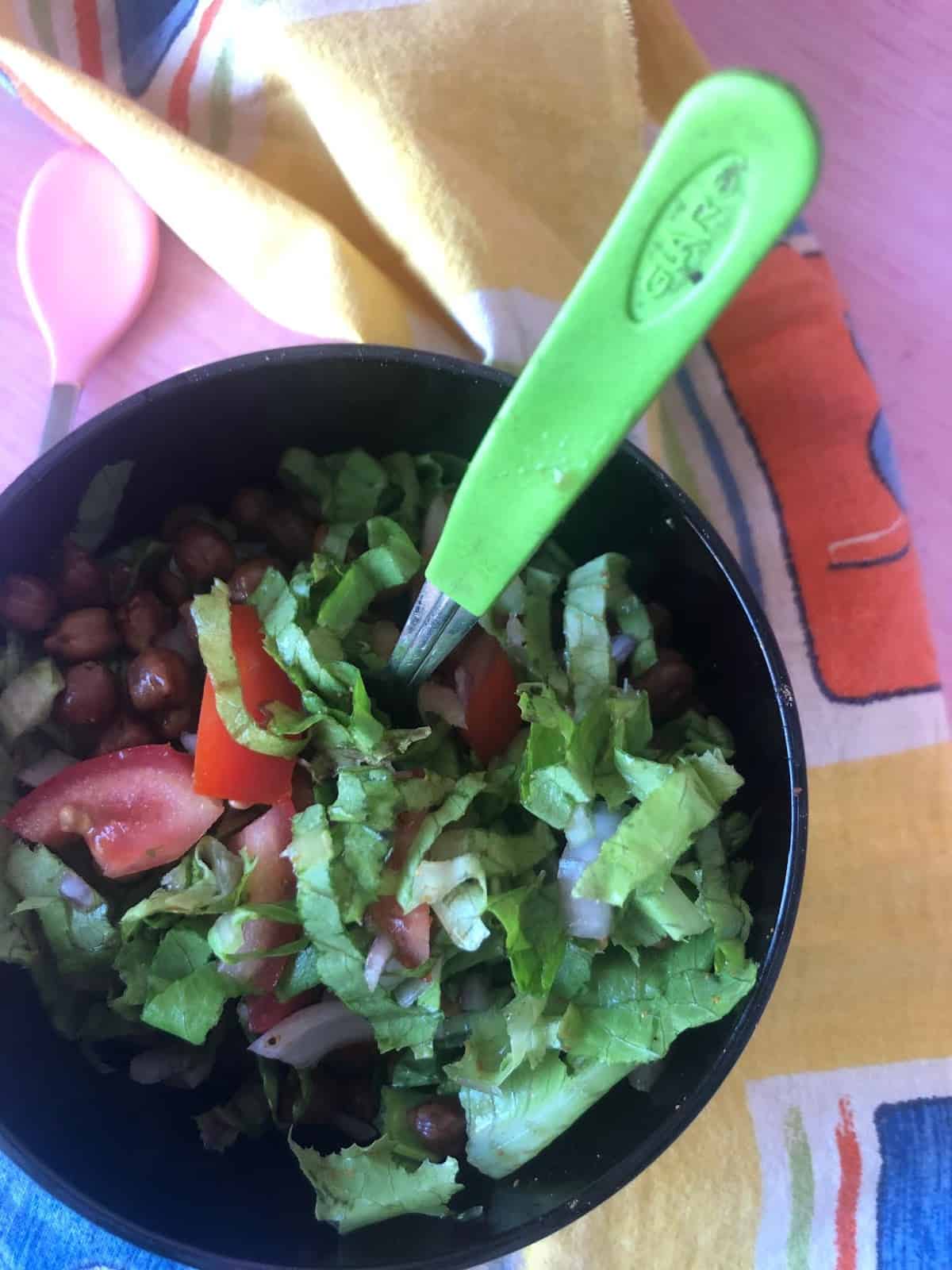 Kala chana salad with onions and tomatoes is my family favourite. Adding shredded lettuce and spinach to this salad sounds interesting !
