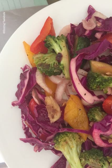 So, the idea of a warm salad came from our early days of our marriage when he used to warm up few veggies (partially roast it actually) and with a drizzle of the vinaigrette, and trust me, it was a great meal to dig into especially after a long work day.