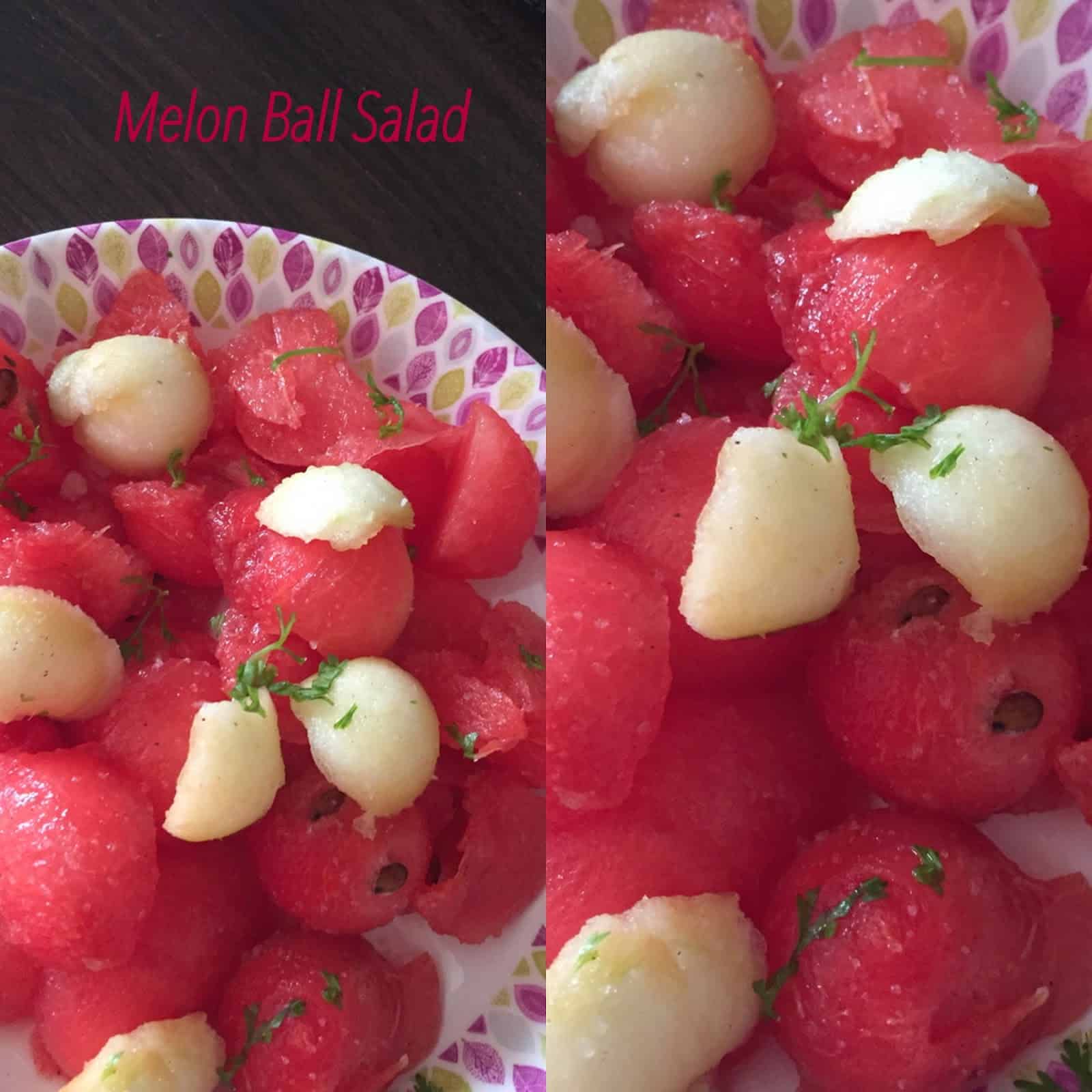 I find it a task to scoop out melon balls...so normally chop it , but watermelon salad is a blessing in summers..well prepared salad.