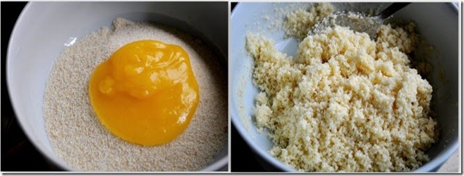 Take another oven safe bowl,add 4 teaspoon ghee and semolina,mix well.
