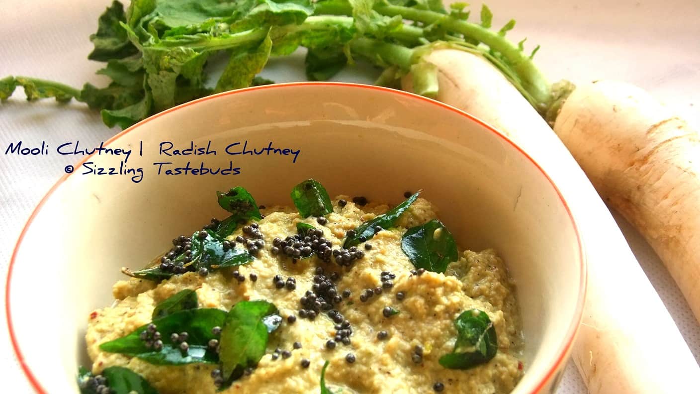 Mooli Chutney (or Radish Chutney) is one of the newest chutneys to add to my menu.. We love our vegetable / fruit based chutneys like Veg Peel Chutney, Apple Chutney, Ginger peanut chutneys to go with Idli/ Dosa. This experiment with whole (and grated) radish was a wonderful bitter-sweet chutney which we enjoyed with Set Dosa (lentil & flattened-rice crepes) a lot. Most chutneys or dips in South Indian are coconut-based. However, in my family we do prefer non-coconut based chutneys, especially for breakfast options along with Idli / Dosa.