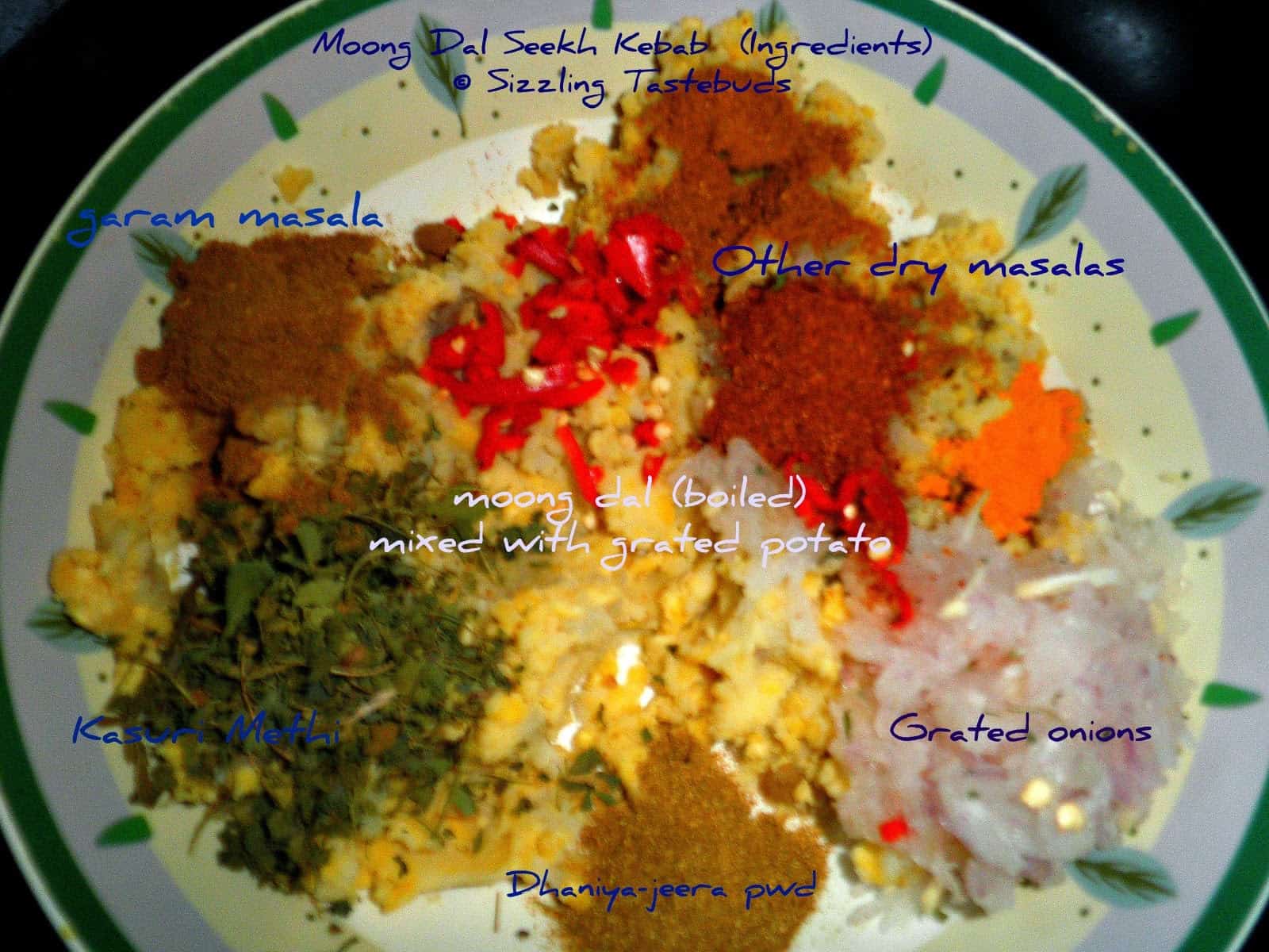 Kababs (or Kebabs as they are already known) entice me to no end : I was introduced to the same by S. Truth be told: Till about a decade ago I always thought kababs were only non-vegetarian, and didnt care for them too much,being a vegetarian myself. But on one of my trips to Lucknow, I had what was my first Vegetarian Seekh Kebab,and I was hooked. I love it even more because most kebabs can be made in Tandoor and like today's dish - Moong Dal Seekh Kabab- without a drop of oil. The only grease I used was for basting (considering it is really negligible). I was wanting to make seekh kebabs at home, for a long time now and Blogging Marathon gave me just than chance.