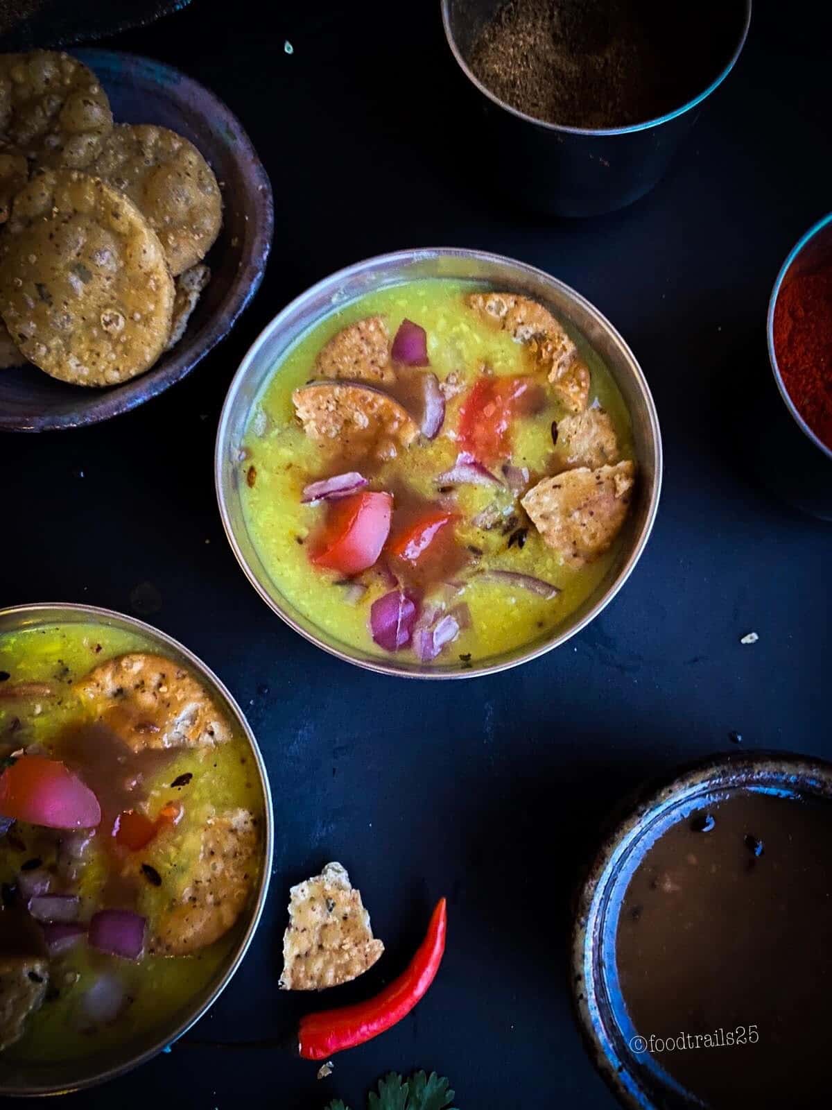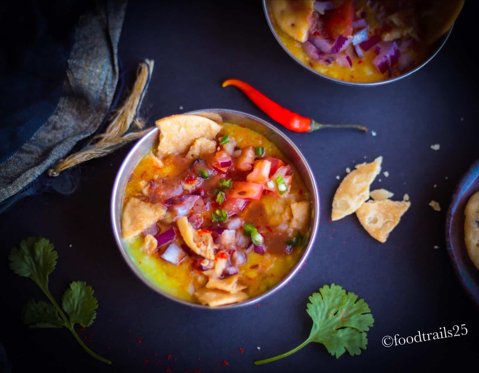 - Serve this dal hot and immediately after adding topping especially papadi.