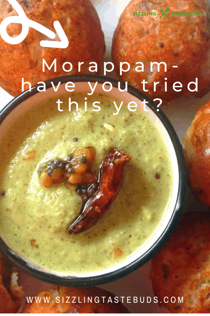 Any kind of chutney (check 21+ varieties of chutneys here) or Tiffin Sambhar is served with Morappam. Plus, as its spicy on its own, we love to have it piping hot as is without any accompaniment.