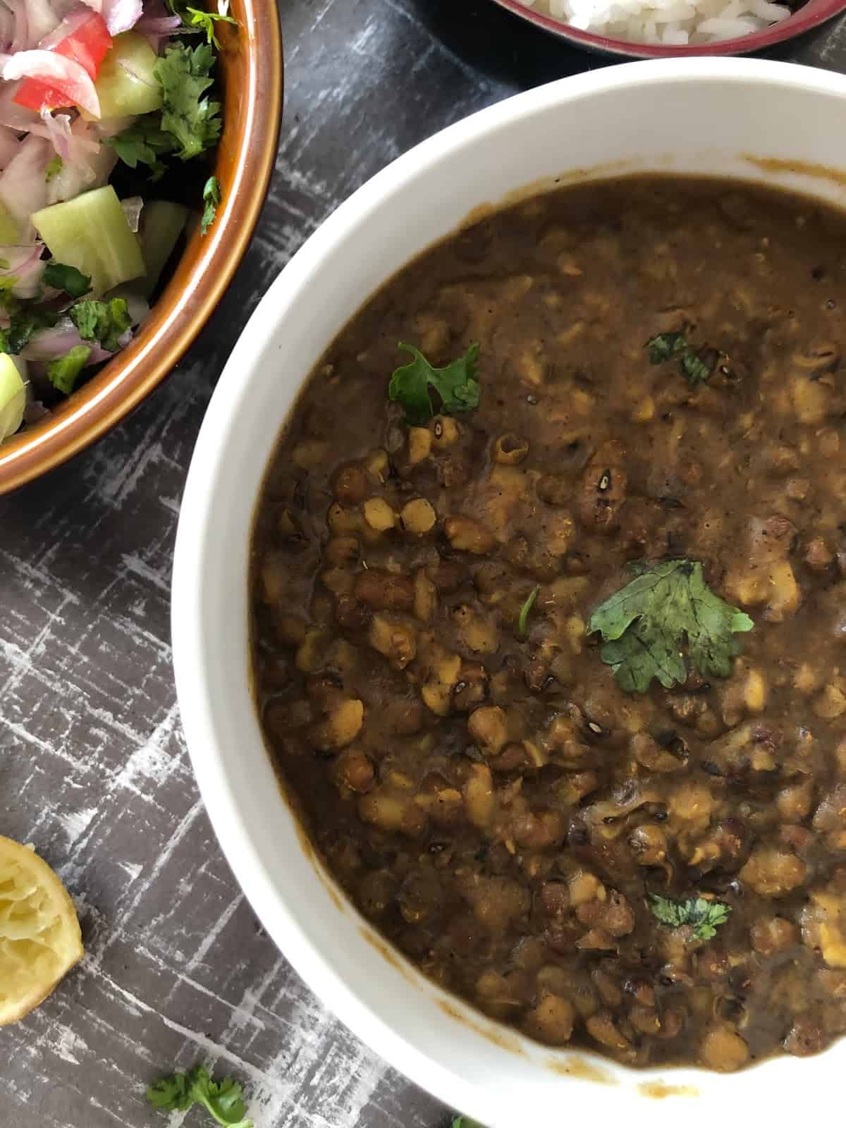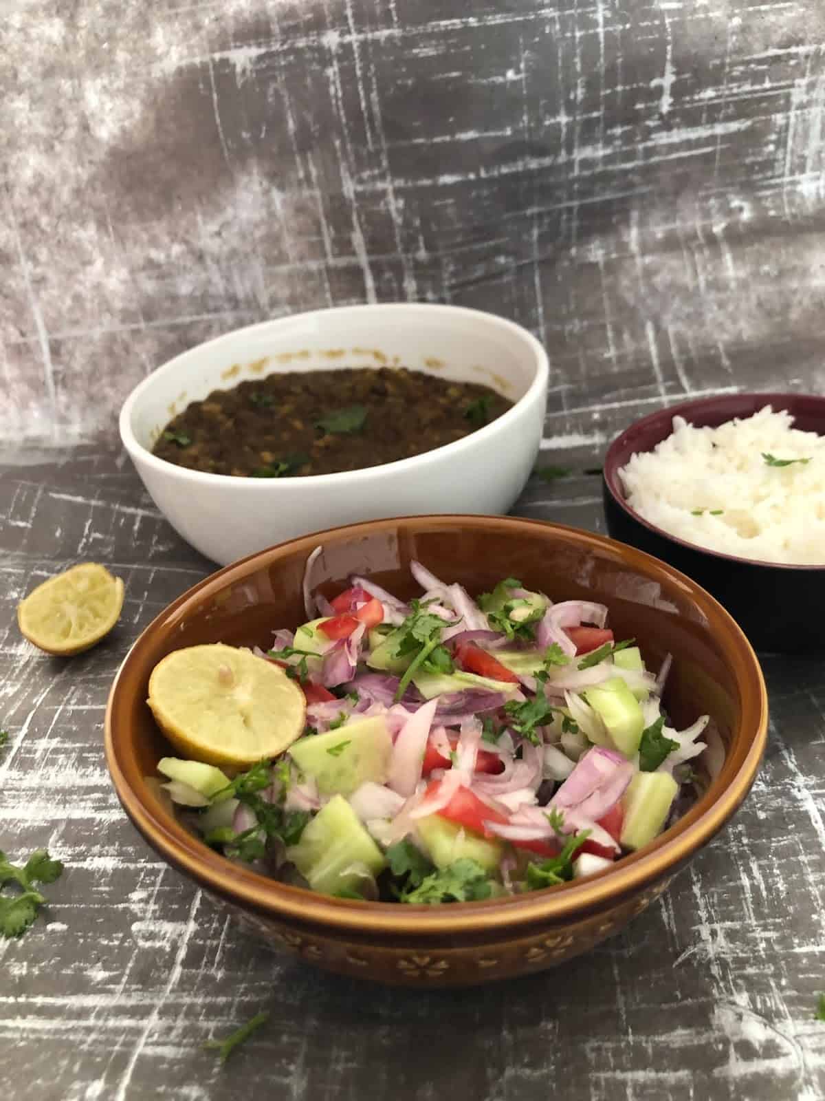 Add coriander leaves and lemon juice and serve with steamed rice. I added Kachumbari as a salad / side and we loved the entire meal.