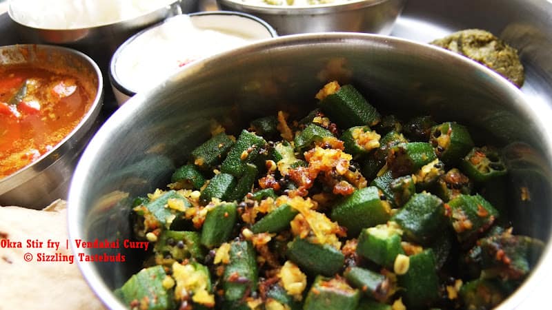 Okra Stir fry (Vendakai dry curry), and a journey of a Satvic South Indian Thali
