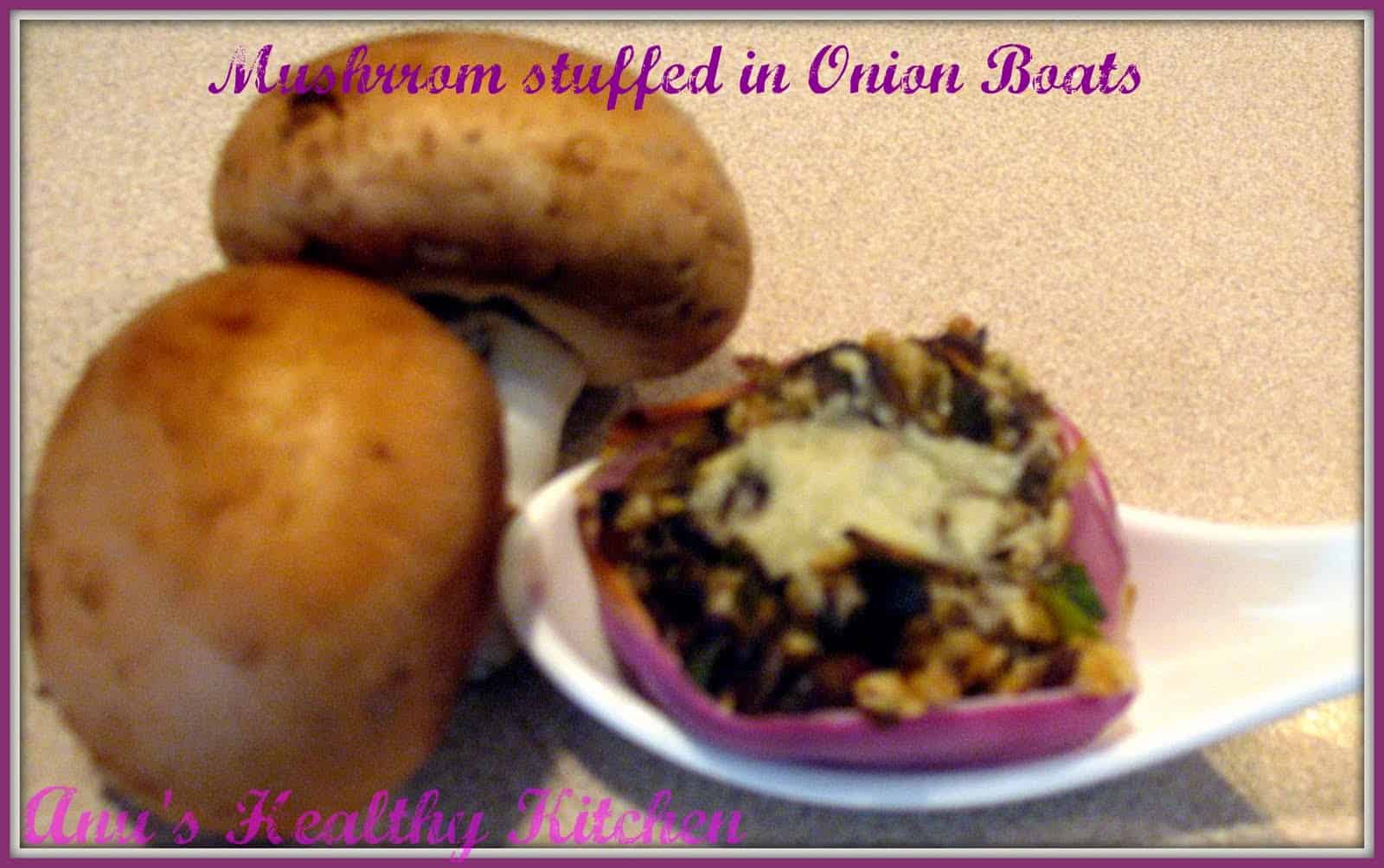 Anu has sent us this innovativeMushroom stuffed in onion boats - now who can resist that !