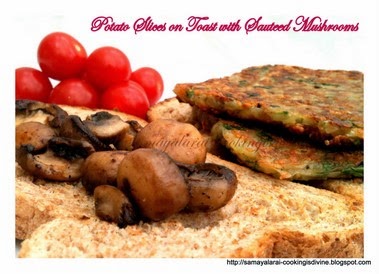 Potato slices with sauteed mushroomsis Jayashri's entry to this dish - an unusual and delightful combo