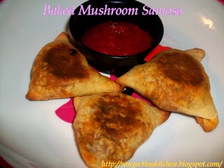 Baked Mushroom Samosafrom Sangee Vijay was very innovative and new too ,as were her other dish -Mushroom Kofta in Spinach Gravy🙂