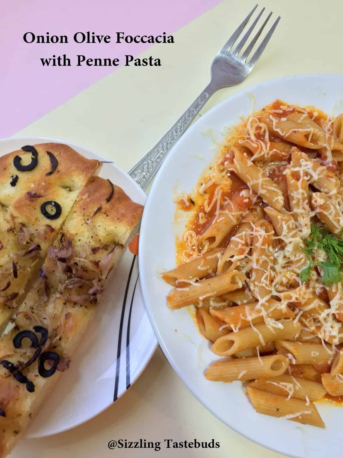 Onion and Olives. Makes for a wonderful accompaniment to Penne Pasta Arabbiata