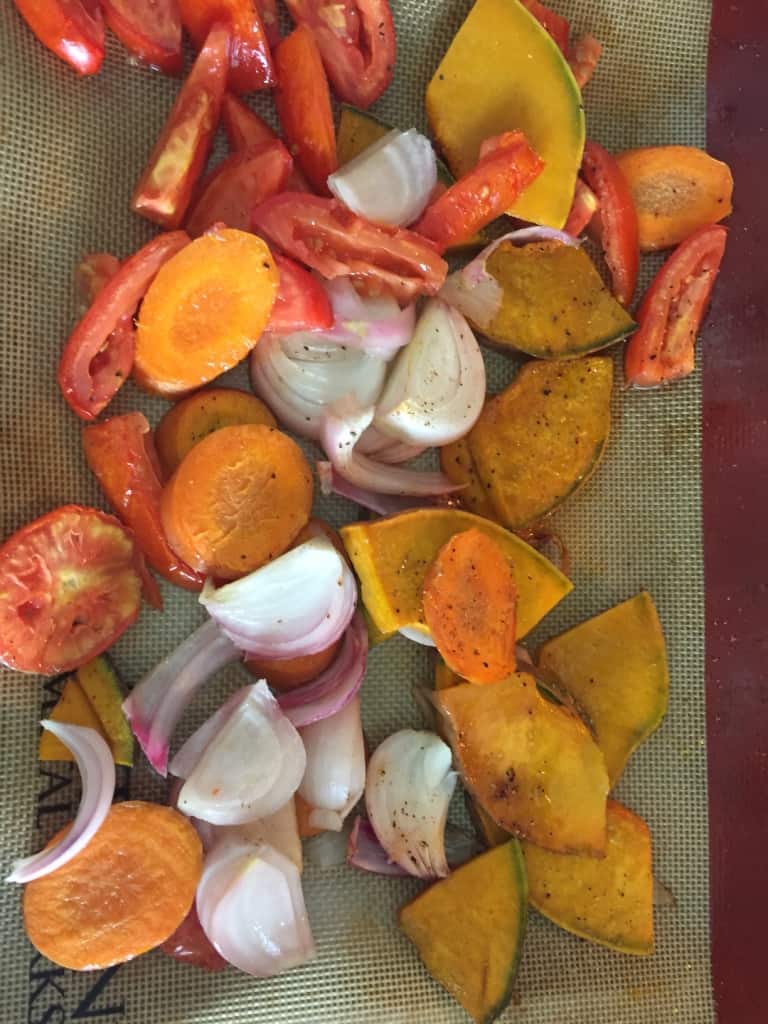 I thought I would post a separate DIY post on how to roast veggies in an oven, but for now I have used the roasted veggies that I made the previous day.